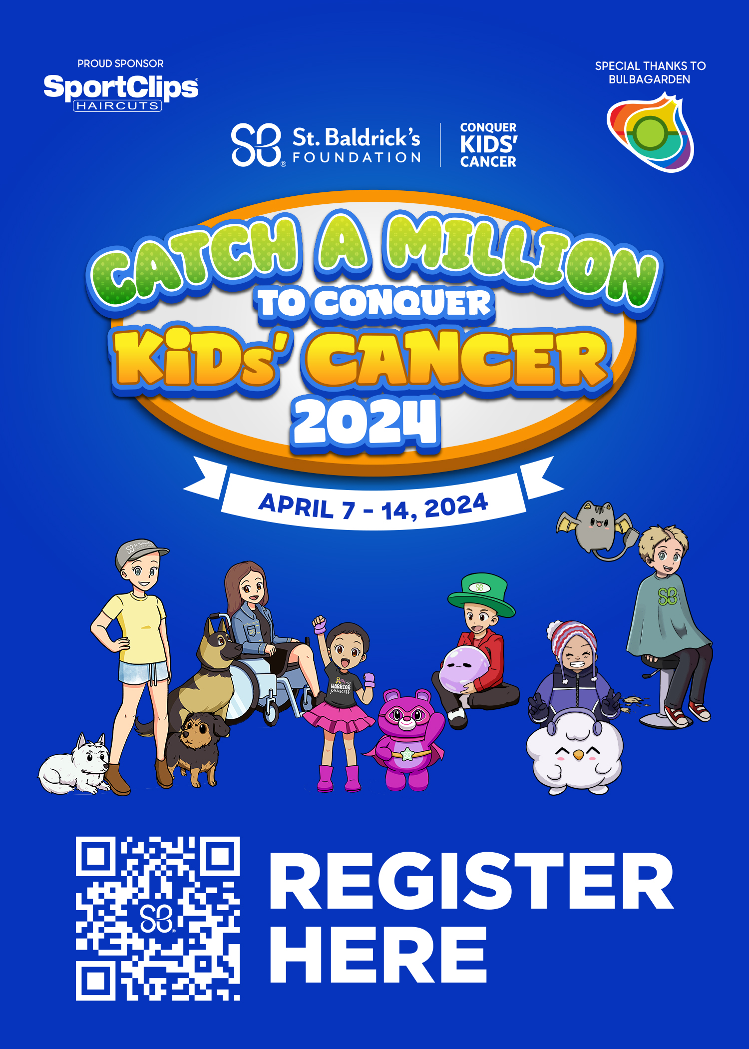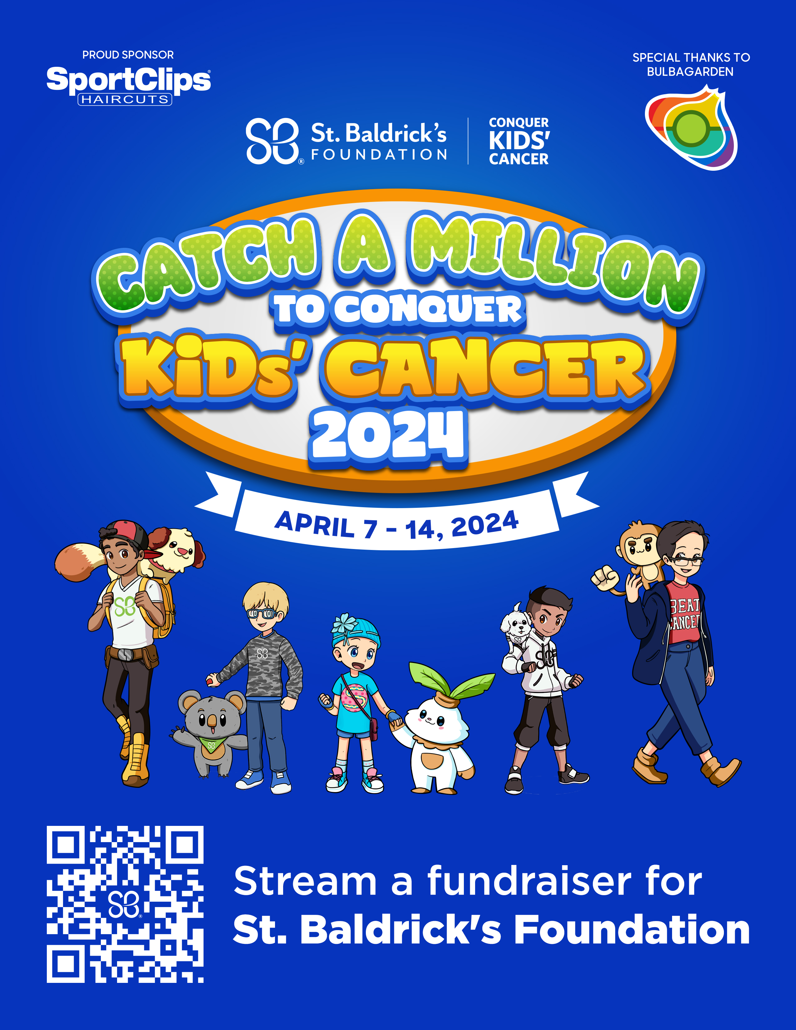 A week-long marathon of Pokémon catching in benefit of St. Baldrick’s Foundation, from April 07 to April 14, 2024.
